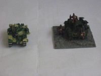 maddoctor - the 2 poses on the left are DSM139 AT-71 Hound Dog infantry walkers next to a GW conqueror right side is DSM-140 AT-71B Hound Dog support walker (heavy weapons). there is a second pose of DSM140 which has the robot holding a large weapon over one shoulder - just cant find one to photo at the moment. Nice bots worth a look. dogtrooper - i have them spread across my epic / 6mm collection so they are not all together. also they are mostly unpainted and range from human forces style robots to the more alien one released by Monday Knight.