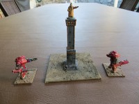Close up of - Cohort Command and Control Centre and 2 Gort population control robots. Not a great photo but trying to show the old legio banner constructed from white dwarf 104.