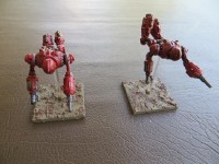 Here are the rest of the range FYI - Left to right- DSM140 AT71B hound dog support walker (heavy weapons second pose with weapons arm that can be attached as desired), DSM 143 Pkz vii sturmkampfer infantry walkers (2 poses) , GW metal colossus, DSM142 K56 Fat Boy infantry walkers (2 poses) and DSM 141VBP-2 tortoise infantry walkers (2 poses). Enjoy.