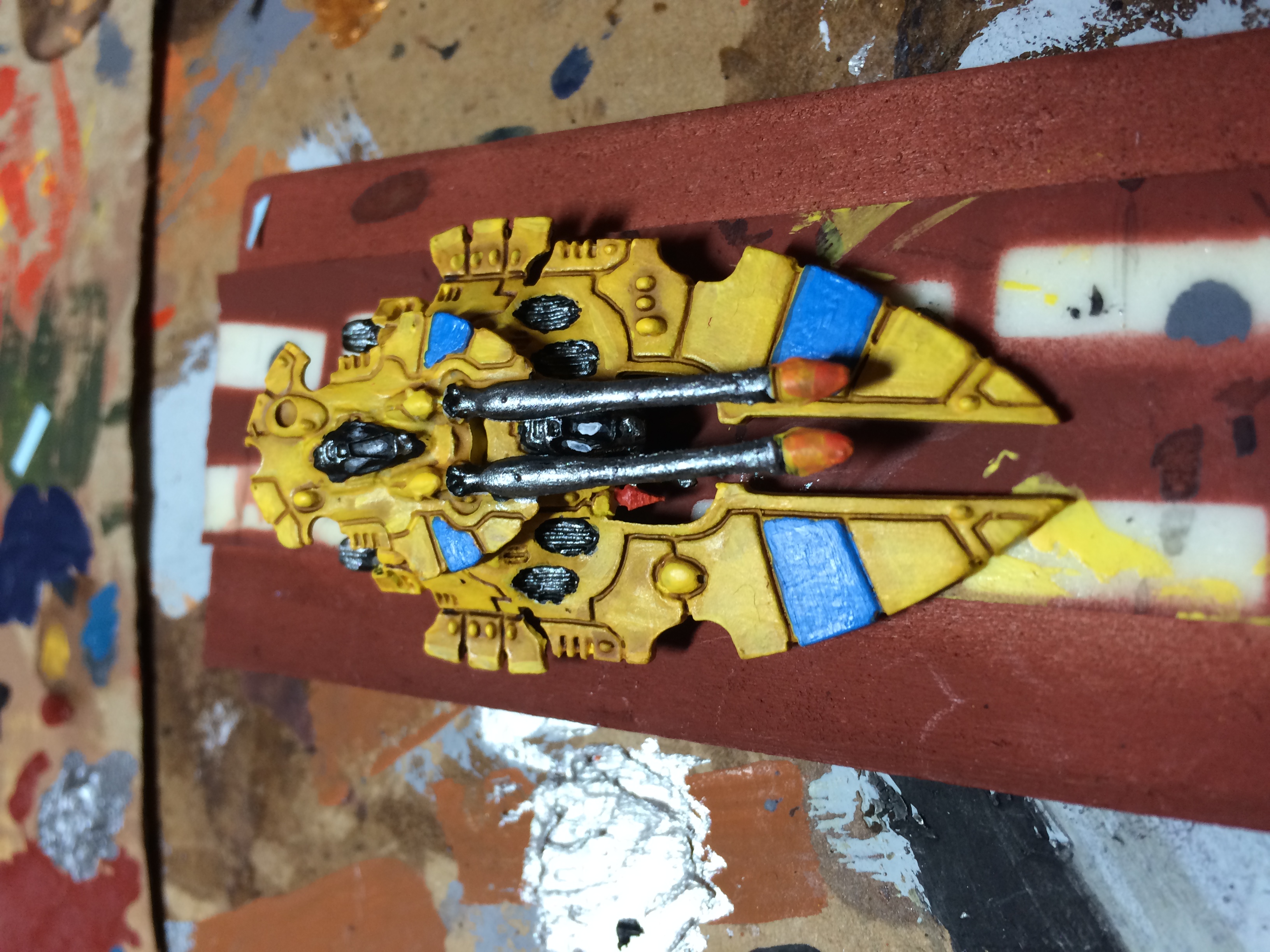 okay its been a while I got sidetracked by my UCM for Dropzone Commander, 1500pts are complete so now i am able to start my Eldar. I finally got some miniature colour schemes down and painted a few war engines, Cobra and Scorpion to be specific. I have five more engines to paint. 2 Void spinners, 1 Cobra and 2 Scorpions. So the Biel tan colour scheme will be yellow with some blue. I used Vallejo paints Flat yellow, army painter soft wash and Azure Blue. the guns were washed with old GW paint called hobgoblin orange and black is GW black, along with bolt gun metal for the weapons and engines. Enjoy