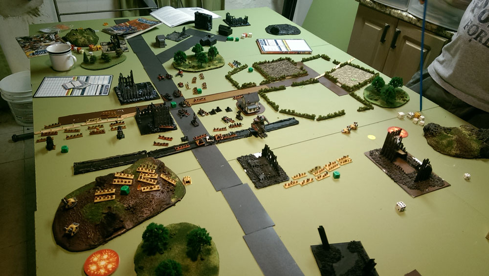 I believe this was a 1500 point game with myself playing the unstoppable orks surging forward to overwhelm the pitiful humans who stood in our way.