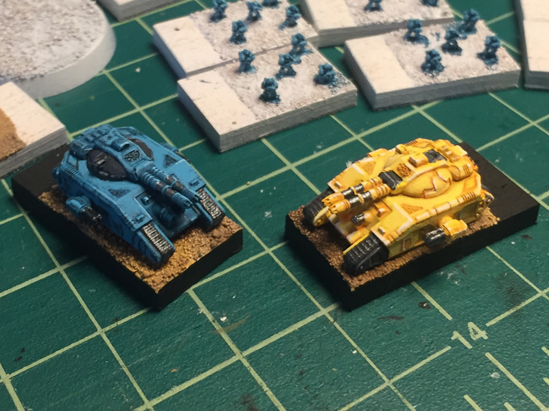 I settled on Imperial Fists for the OPFOR, and as you can see, the color contrast works very nicely.