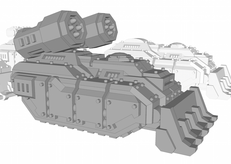 Flame nozzles will still need to be built. In the meantime I've been updating the tanks a bit. Following Moredakka's suggestion I've shrunk the weapons a bit. The lascannons might have to be bulked just slightly though since I'm worried the barrels might easily break off.