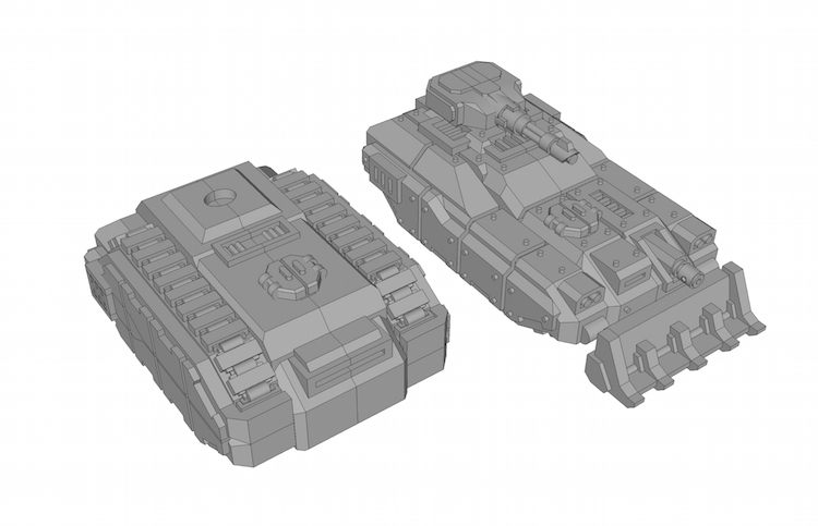 Another thing I'd like to try is to design something along the lines of a 'vehicles upgrade sprue', well not an actual sprue, but just a few bits of that sprue. In other words stuff like a Hunter Killer missile(s), search lights, smoke launchers, and maybe even some pintle mounted weapons and extra armour.