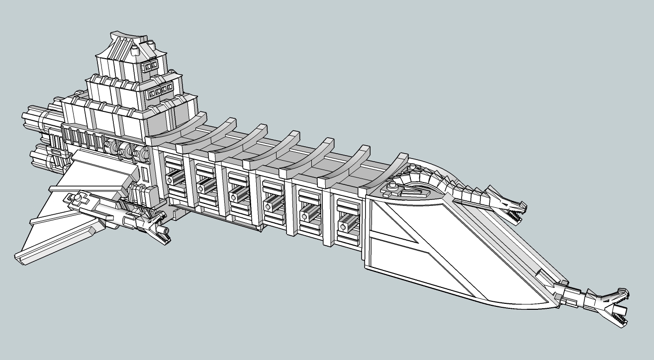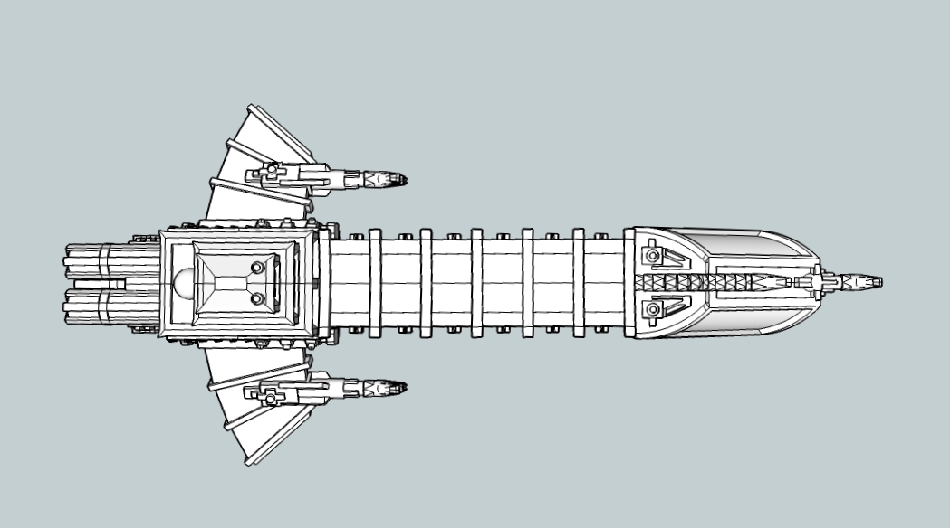 @ Sawbones: I tried giving the wings a crescent shape, but they ended up getting in front of the port/starboard batteries... I have to ponder on this some more :)