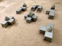 Unless I've got my eyeballs crossed, this would be an potential example of the terrain that a set of 10 "mixed" sprues would let a player build: 3 small buildings and 3 medium buildings.