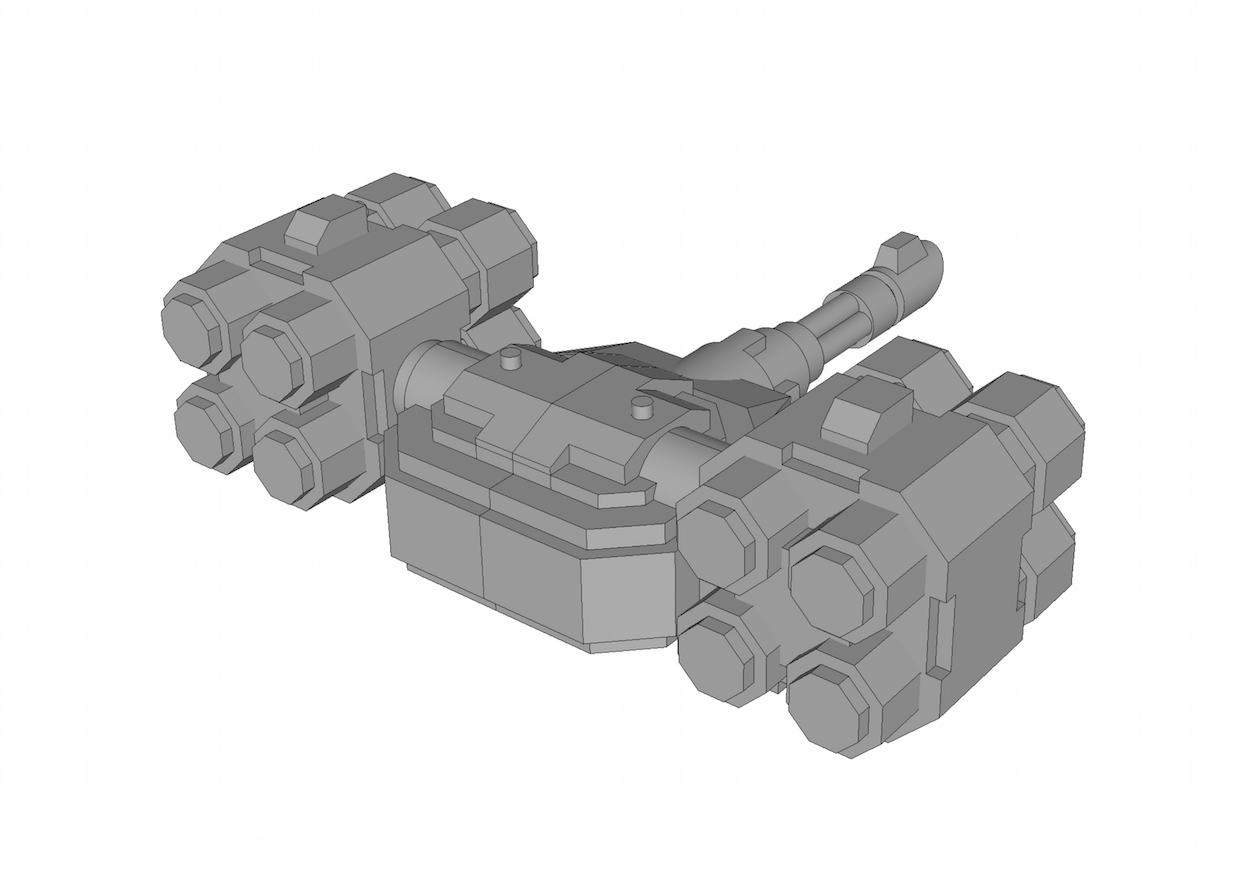 However, I do like to see the hull being used for different types of vehicles as well. Started working on a very early version of a missile artillery variants. It will use the same hull as the Siege Tank, but the front weapon will basically mount that includes a heavy machine gun or a heavy flamethrower. On its back there will be a missile launching system. Probably two variants, one firing 4 to 6 missiles (something akin to this), the other one will carry a single large missile.
