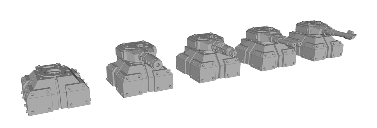 The evil and looted upgrade sprues have been put on hold as well. Problem is that these components are (a) a bit too fiddly and (b) when beefed up (for easier production) end up make the IVR look out of proportions. The best solution here is to probably to take the hull and turrets and tweak them to make them look evil or looted and then print those, rather than the adjustments being separate bits.