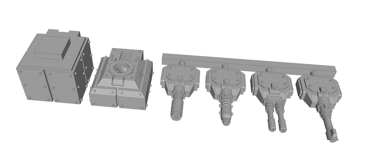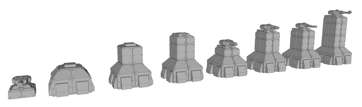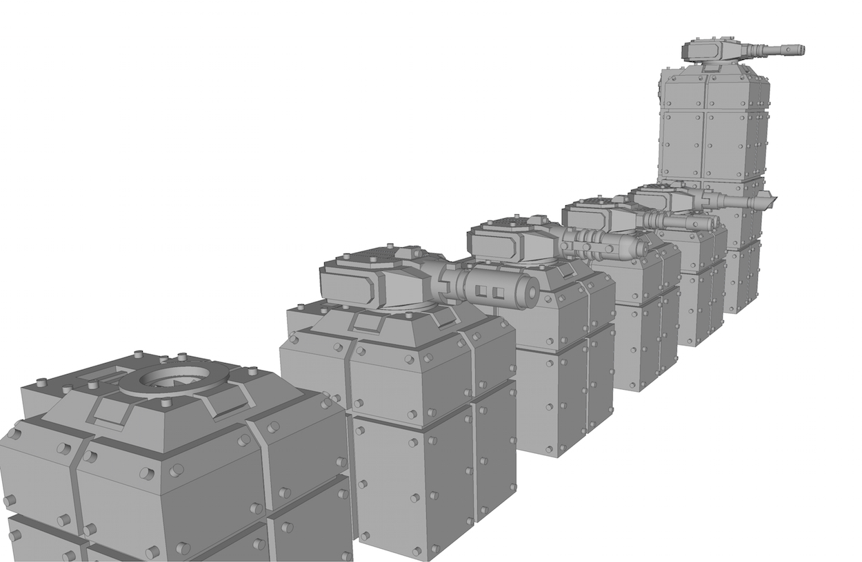 I've decreased the height of the turrets a bit, the weapons have also been slightly shrunk, but they will need further work. The flame cannon and subatomic heat gun will need some significant work. The chem weapon is as good as ready.