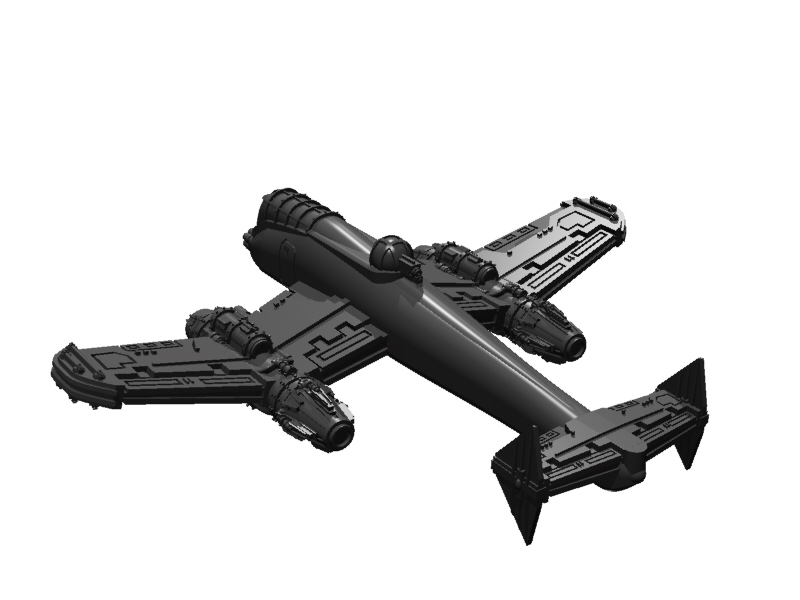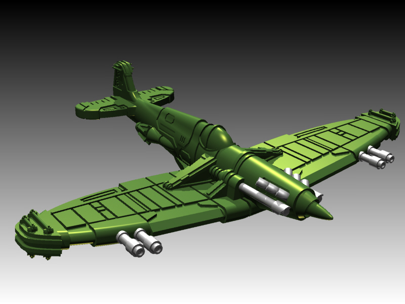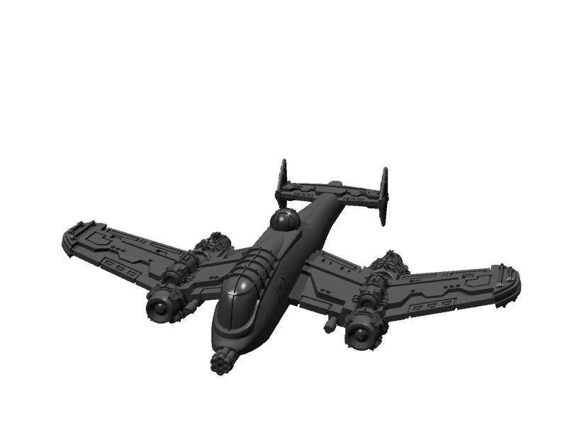 I've given it an Avenger-type cannon (ala the A-10 Warthog), two laser cannons in the wings, and a dorsal defensive AA turret.