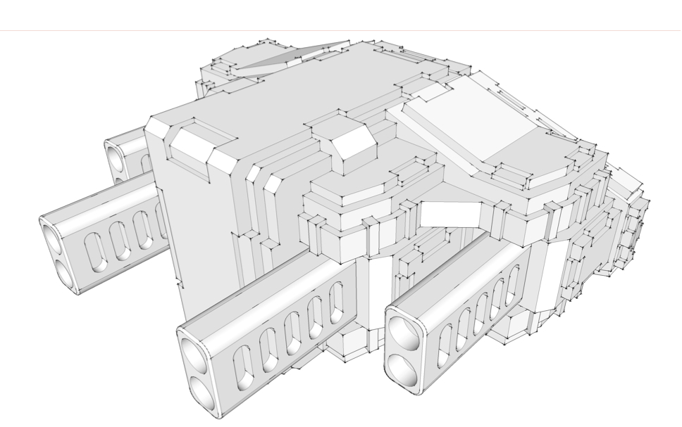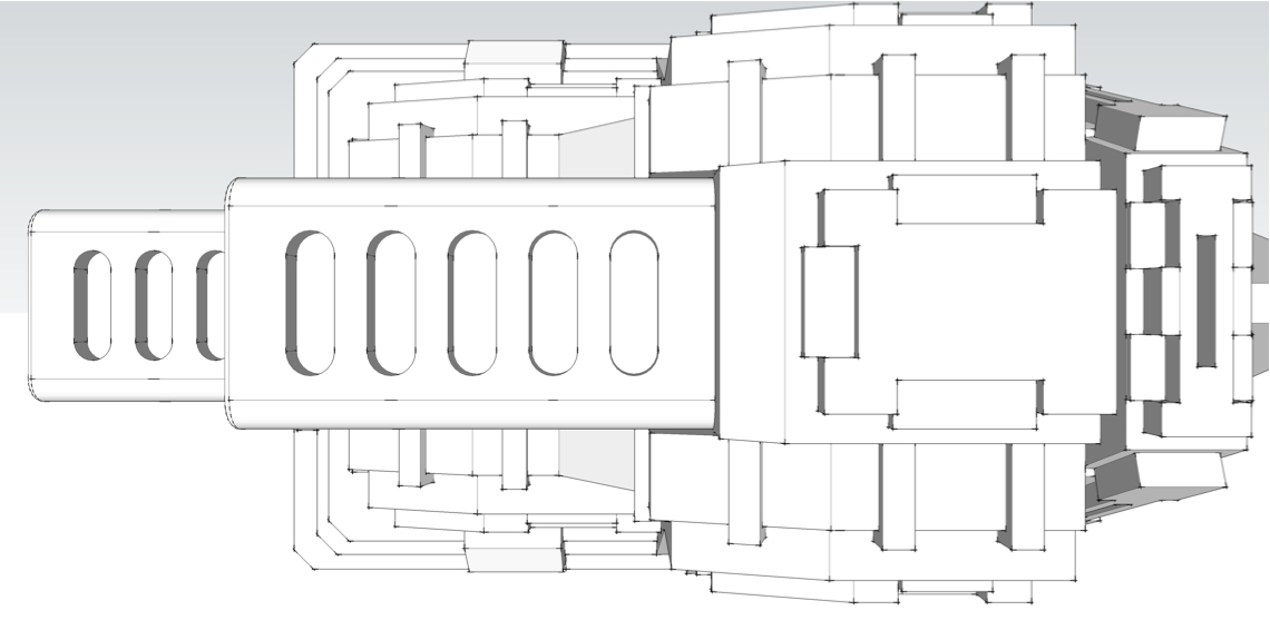 I've been away for a couple of days, so sadly no new updates yet. I have some ideas for a variant prow with large turrets on it. As for the current turret component, I need to rework the turret design a bit since they are perhaps too small to print, so I started to tweak the design a bit: