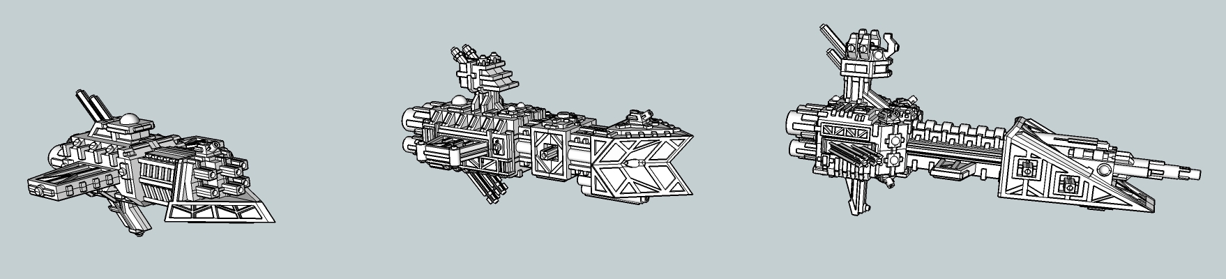 Let's talk chaos frigates; first here's the gun frigate you've already seen; I've thinned the middle section a little bit, to avoid it looking too stubby: