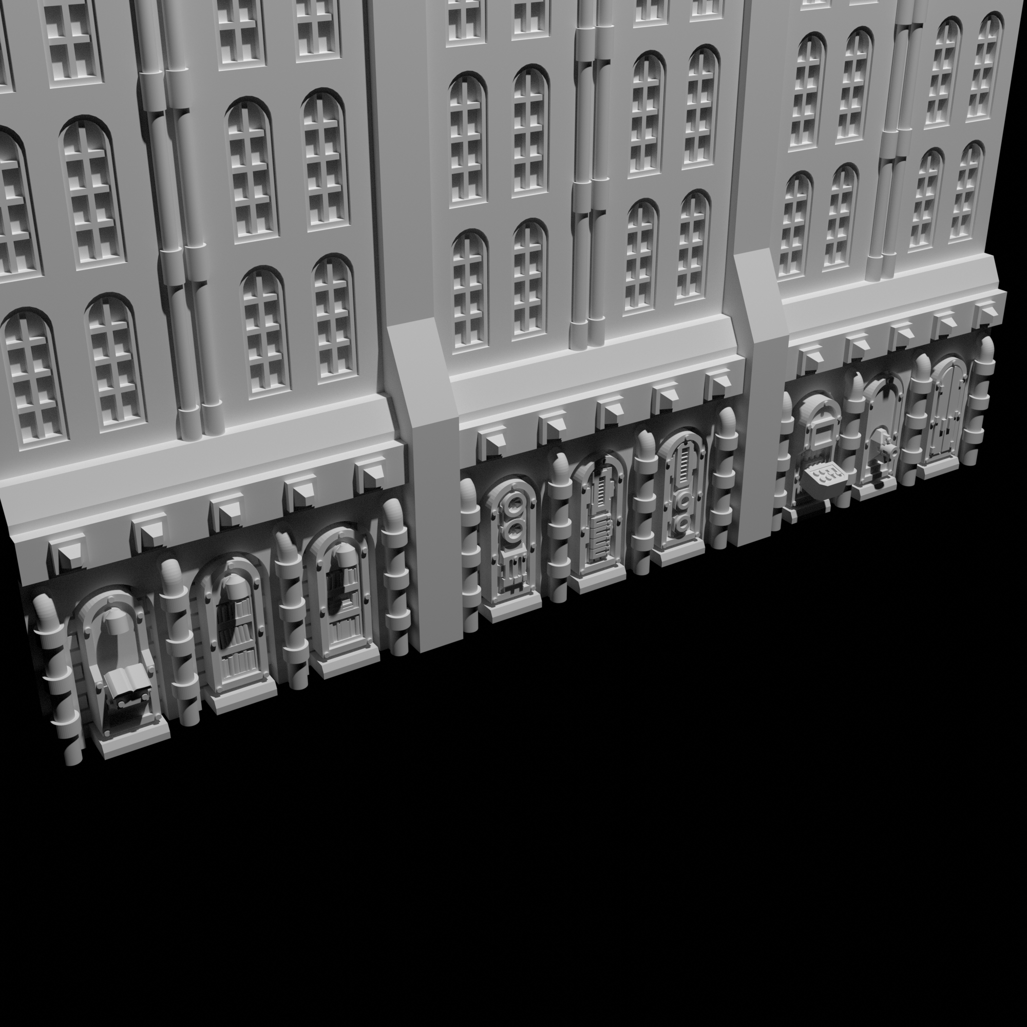 Been working on some extra bits to add on the bottom of my building design. Note that these bits could be added anywhere else a well. These are just the first three designs, I've currently got about 15 such parts done (vent systems, cogitators, libraries, etc) and will most likely do a whole bunch more of them.