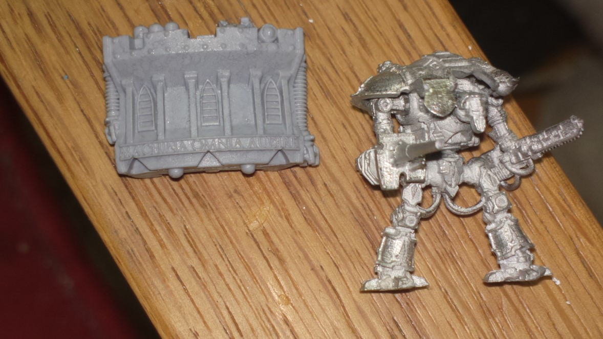 The piece is curved with recesses so not do-able as a whole piece, but I think I could maybe do a green-stuff mould of one third section of it and just make more copies to fill up the rest of the curved wall of the mobile research station. I don't know if I could get the latin text at the bottom to cast but if not I could do without that bit.