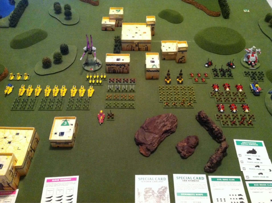 I forgot to say too that earlier the Warlock hit one of my Weirdboy towers and nobz with an Eldritch Storm, which slowed them down further, but I quickly dispatched him with my warboss detachment.