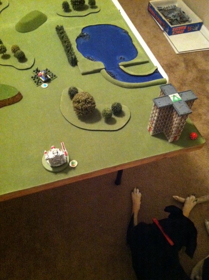 My warboss was also able to take up positions in the biggest building in the town center, and took some pot shots at the Phantom, but couldnt hurt it. It was also taking hits from other units and was close to breaking point.