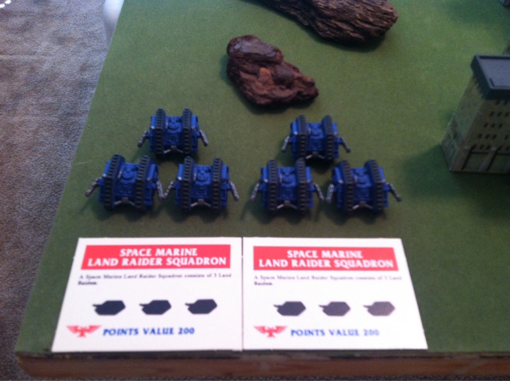 So I really didnt want to spend a lot of money on this, so I decided to try and limit myself to only building up what was included in the box and mostly the main rulebook, so basically Space Marines,, Orks, and Eldar. Also, I used the minis that cam in the set as the basis for each of the armies, and had enough Space Marines that I decided to do 2 Chapters, an Ultramarine one, and a Sons of Horus one, so that I could teach noobs the game with standard armies so they could appreciate a Land Raider for example, because both players had them. Aside from a few units, everything I decided on including had rules for in the rulebook. I had a spare Warlord so I could have a loyalist and traitor one, and then decided on including a Slasher Gargant and Eldar Phantom for titans, and the only two minis I included that werent in the main rulebook were the Eldar Deathstalker and Ork Gibletgrinda. Also, going with the updated point values for Eldar that were released in the Renegades set.