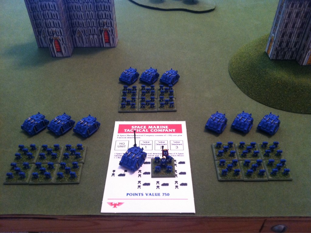 So I really didnt want to spend a lot of money on this, so I decided to try and limit myself to only building up what was included in the box and mostly the main rulebook, so basically Space Marines,, Orks, and Eldar. Also, I used the minis that cam in the set as the basis for each of the armies, and had enough Space Marines that I decided to do 2 Chapters, an Ultramarine one, and a Sons of Horus one, so that I could teach noobs the game with standard armies so they could appreciate a Land Raider for example, because both players had them. Aside from a few units, everything I decided on including had rules for in the rulebook. I had a spare Warlord so I could have a loyalist and traitor one, and then decided on including a Slasher Gargant and Eldar Phantom for titans, and the only two minis I included that werent in the main rulebook were the Eldar Deathstalker and Ork Gibletgrinda. Also, going with the updated point values for Eldar that were released in the Renegades set.