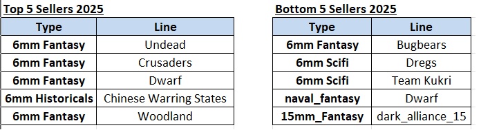I thought maybe it would be interesting for folks to see my top 5 and bottom 5 selling product lines from 2025, which I have attached to this post
