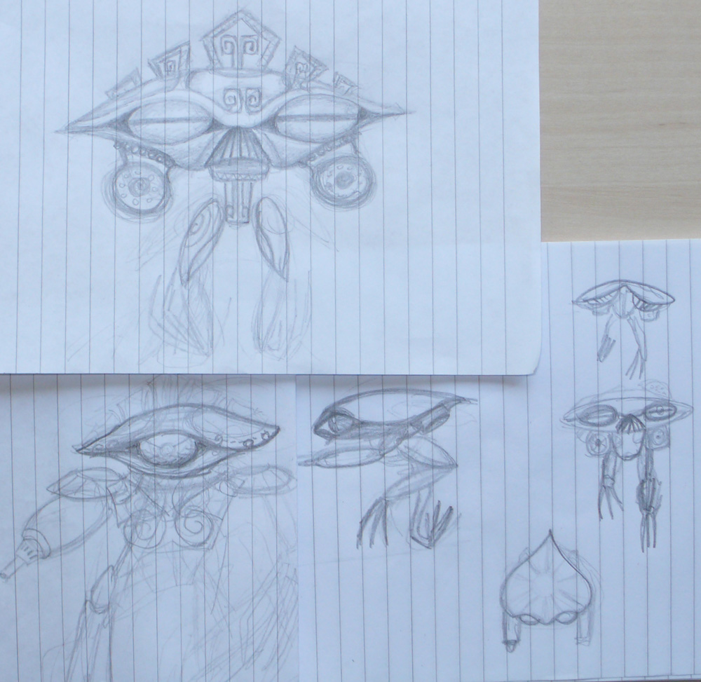 Bottom ones are early sketches. Top one still very unfinished, but you get the general idea.