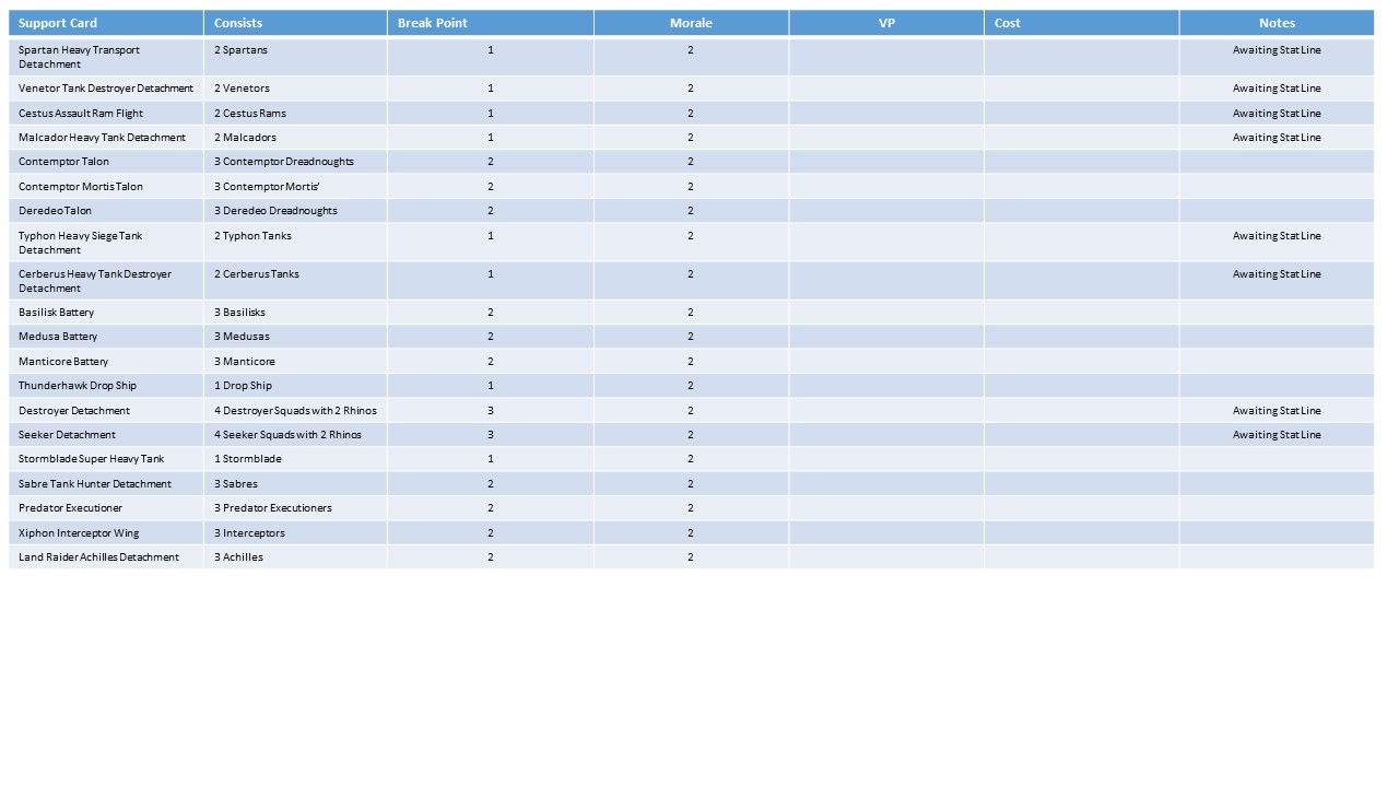Horus Heresy Army Cards |