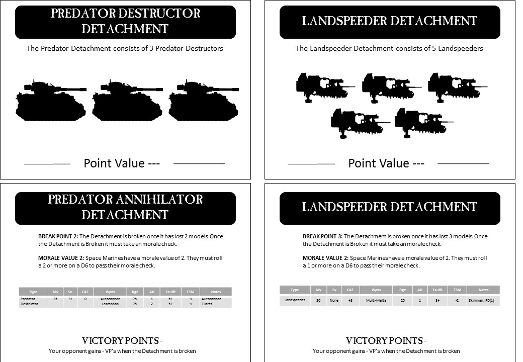 2) Spartan assault tank - Heavy Tank (think Land Raider on Steroids), 2 sponson Quad Lascannons, and a twin heavy bolter, carries 5 stands.