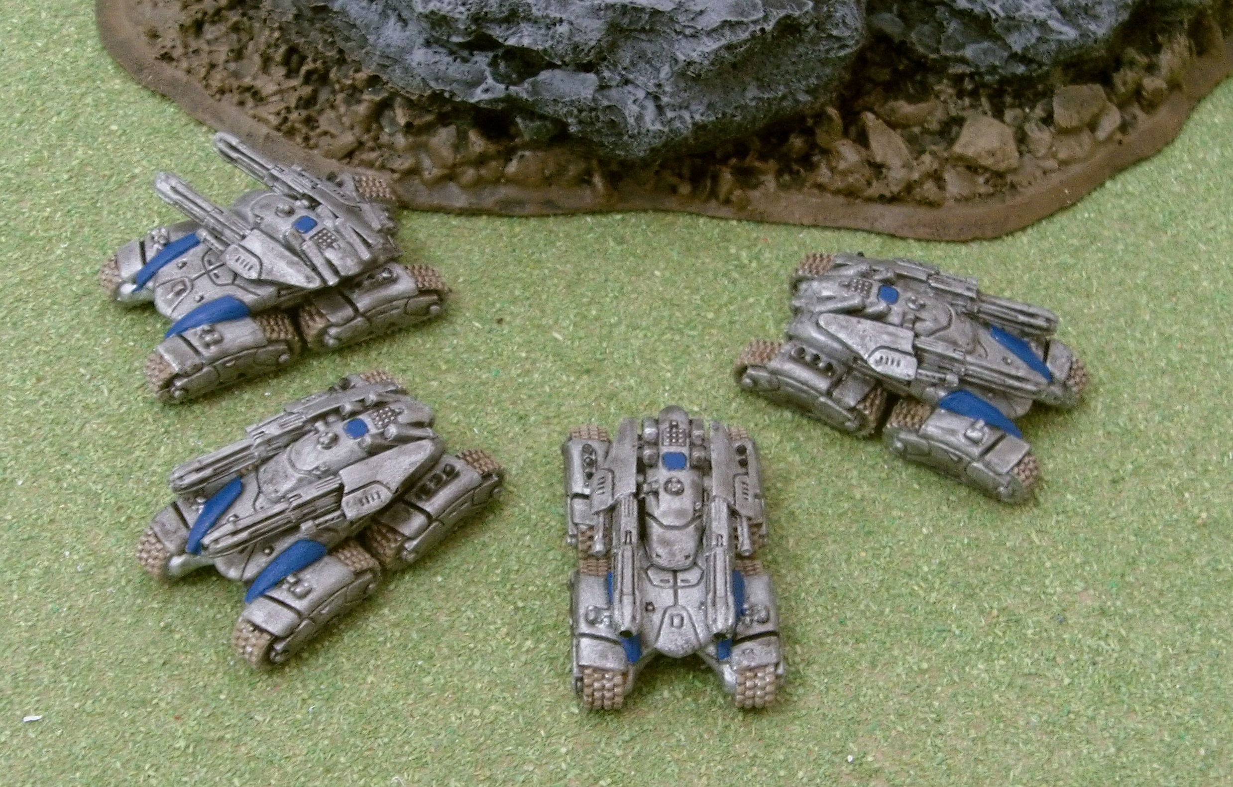 I thought it would be helpful for everyone to know the size of these vehicles in comparrison to other Epic minis so that stat creation is made easier. The Plasmablast minis roughly have the same footprint but a substantially lower height than their GW equivalents. The Marhaf are intended to be a technologically advanced force so I don't have much problem about their armour being as good as anything other forces have even though they are slightly smaller.