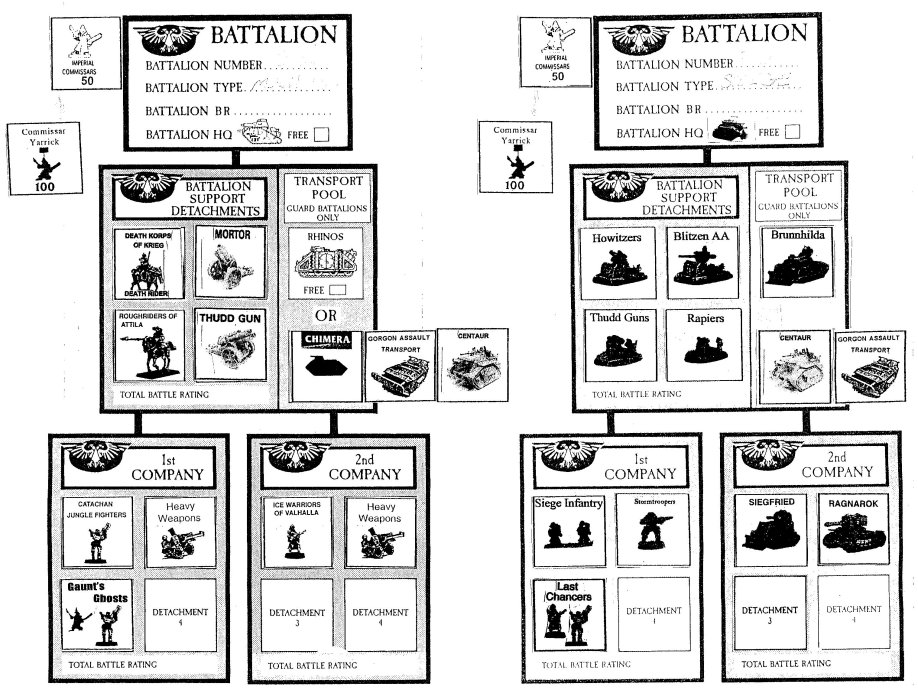 I'm not sure how much you remember (or have experience with) SM1 era organizations and army building. But they function to a large degree like a system where everything IS a "support card". The main thing is that there is an organization "matrix" guiding how those "support formations" are organized. The only thing the player days is "flesh out" the template. Take a look at L4's pics (while not exactly what we may use it gives and idea).