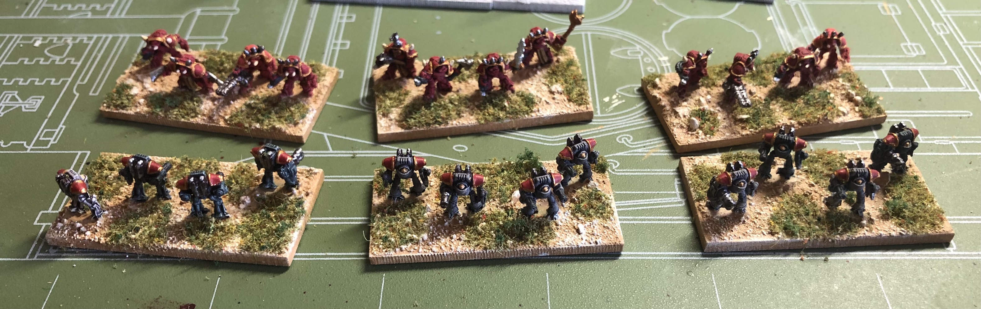 Imperial fists, White scars, Alpha Legion (heresy) and Alph Legion (Chaos - cultists, and some Teminators and marines).