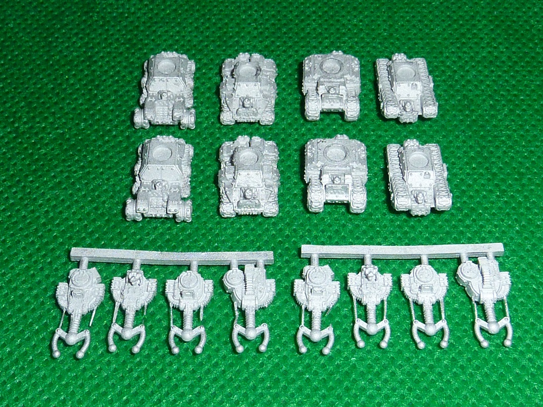 They look like a good option for Stompas overall, mixed with the Tramplers and GW's Stompas, as the lack of pilot on the Crushers makes hard to know their scale so they do not stand out. They seem also good to mix weapons with GW's EA ones or with the the ''6mm'' Tramplers.