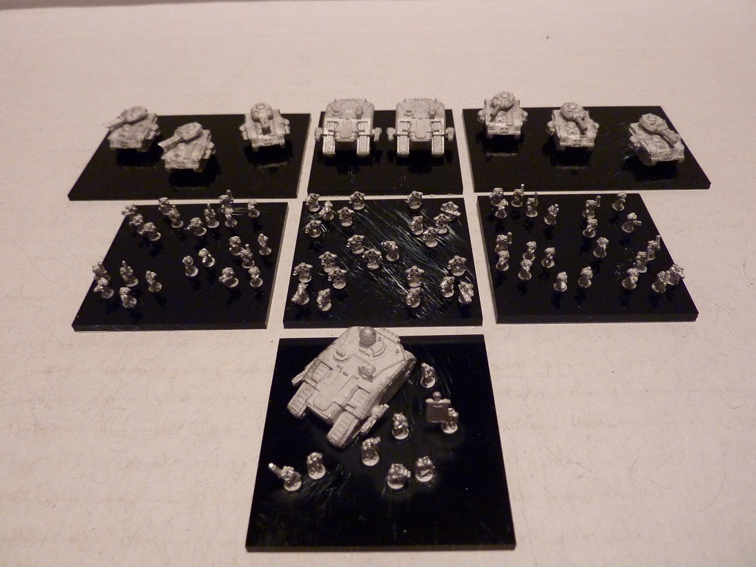 2 x Trojan maniples with turret upgrades, 2 60 x 40 bases with three vehicles each.