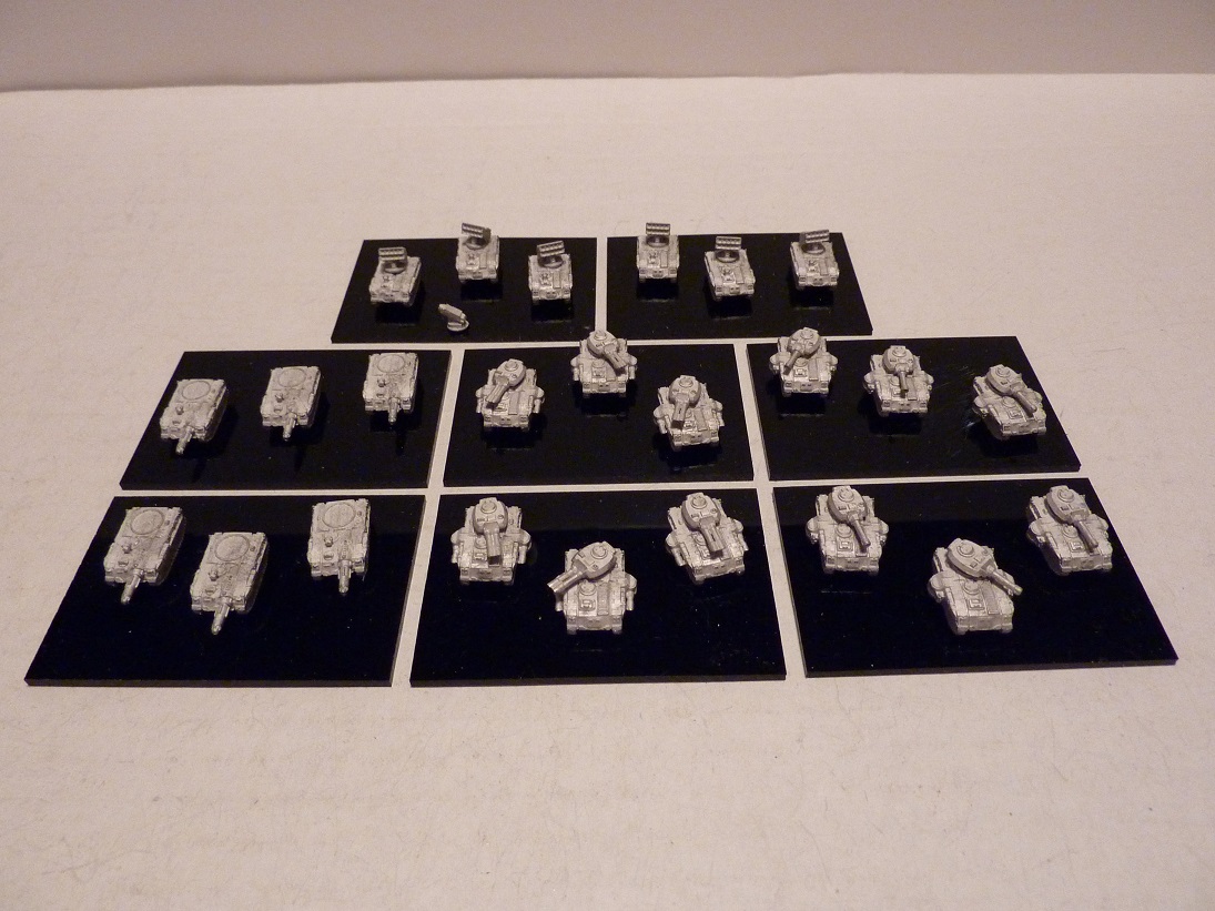 3 x Guardian tank maniples, 3 60 x 40 bases each with 3 Guardian tanks.