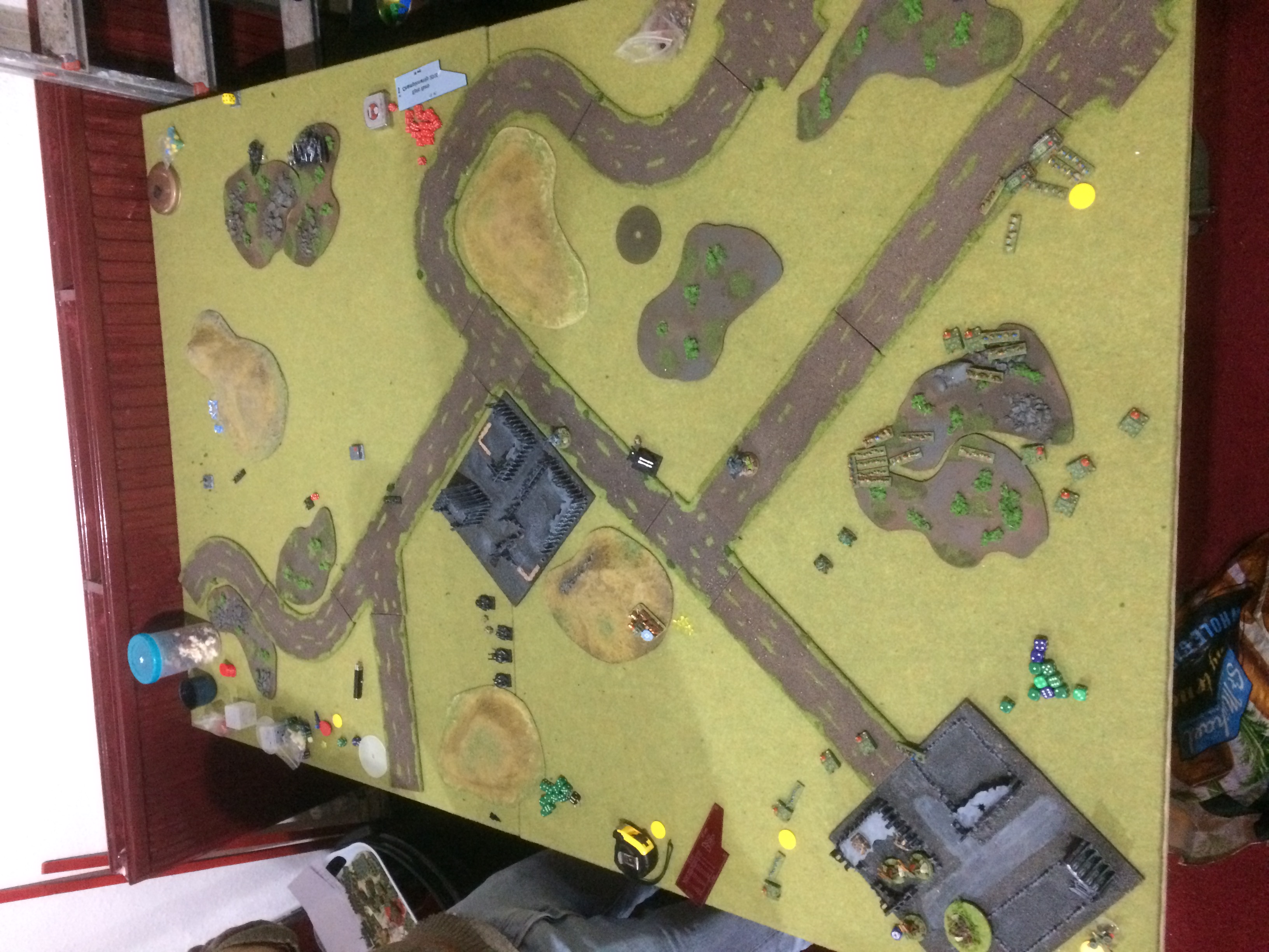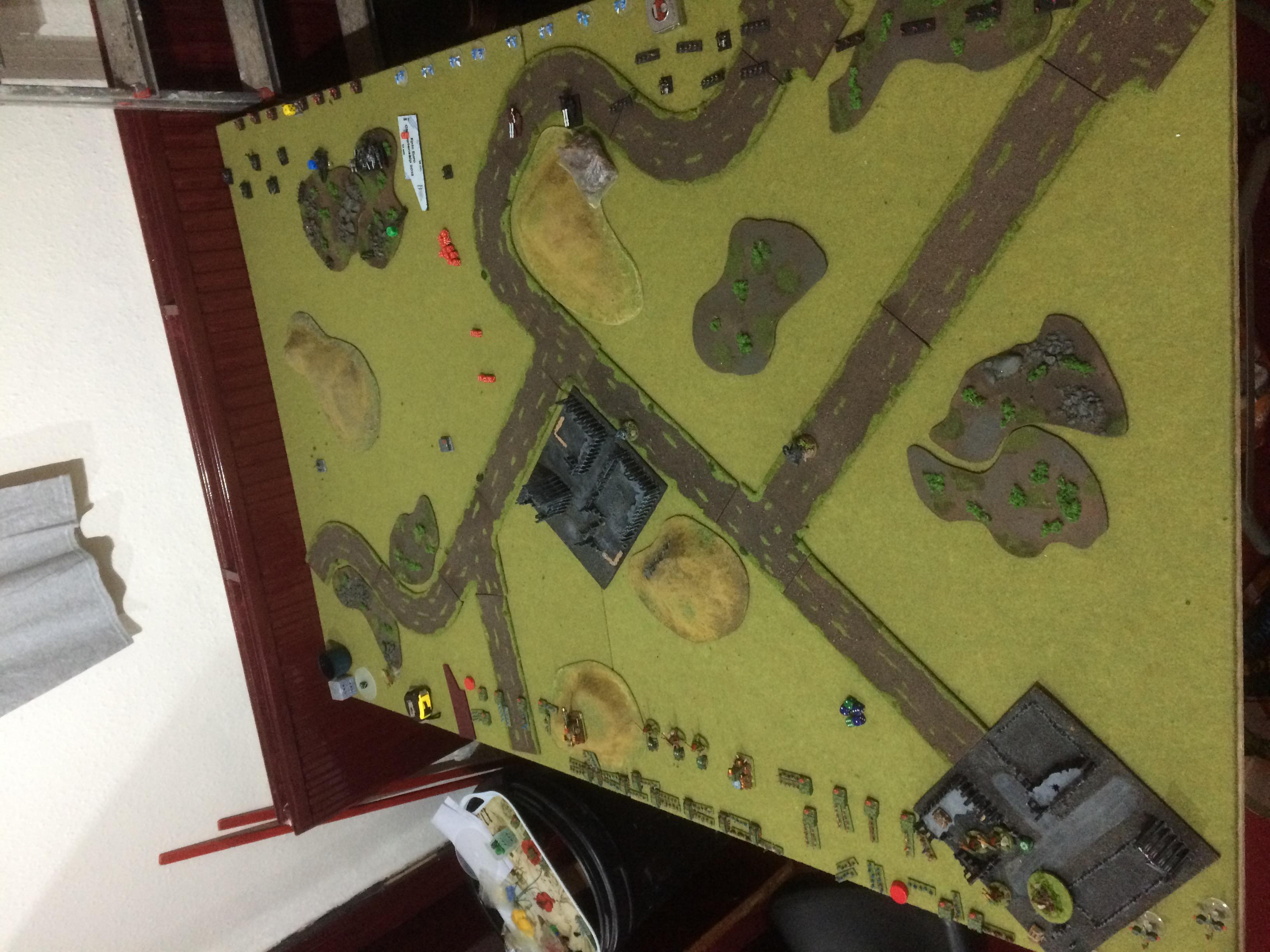 Turn 3 it was pretty much a mopping up operation with Eldar units being placed to slow any advance of the Guard and the game was won 3-0. Could have been 5-0 but the lone commissar tank saved 3 hits and I broke the Mech company when I didn't need to allowing it to break into the Eldar half which then rallied.
