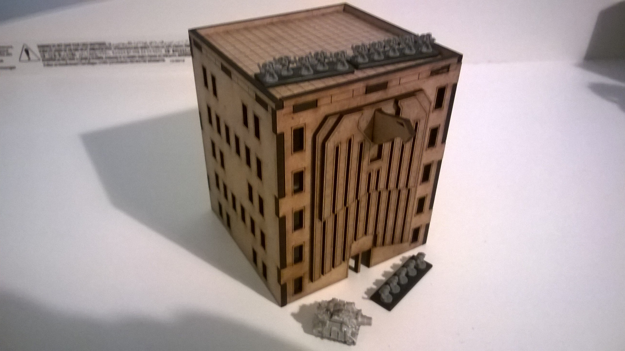 @Nitpick - So last night I added some detail to them after all :) I had a mess about with some other buildings and it was just too plain. So there is etched detail around the windows and the wings of the Eagle. I'll have some photos up at the weekend.