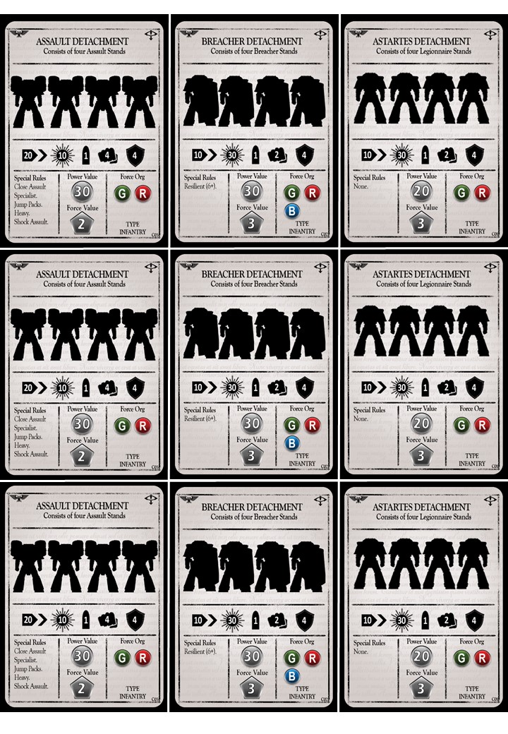 Centurion uses a card based activations system where a Detachments mobility (Force Value (FV)) is taken into account.