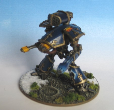 Here's mine! A bit early, but ah well! First because, despite countless years of Epic gaming, this is my first painted Reaver Titan ever! Photos are a bit naff though, so sorry about that.