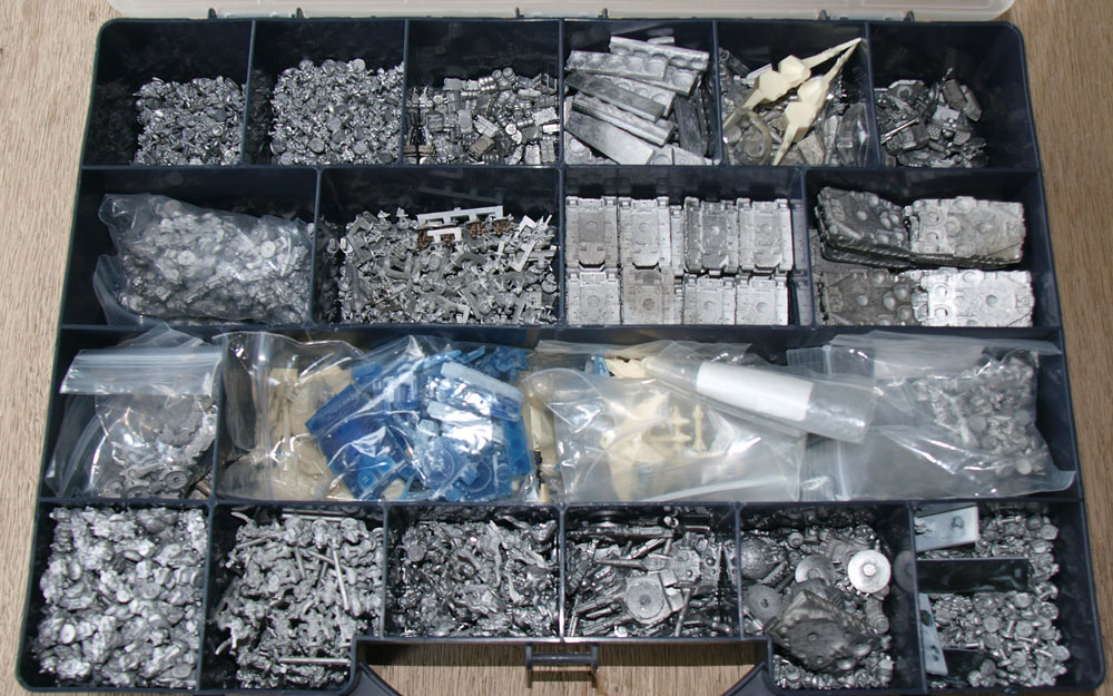 And the EW stuff. There's samples of pretty much every EW release to date About 6 kg worth of stuff, including 30 Guild tank hulls and 16 Enforcer Super Heavy Hulls + all the turrets you could ever want.