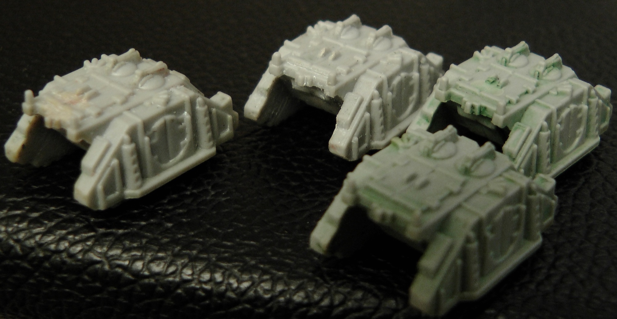 Hi, here are pics of the Rhinos. I tried to take them 'warts and all' so that there's no chance of you being surprised by their condition if we trade. You'll notice there are some little flaws, but nothing that I think would really be noticed after painting.