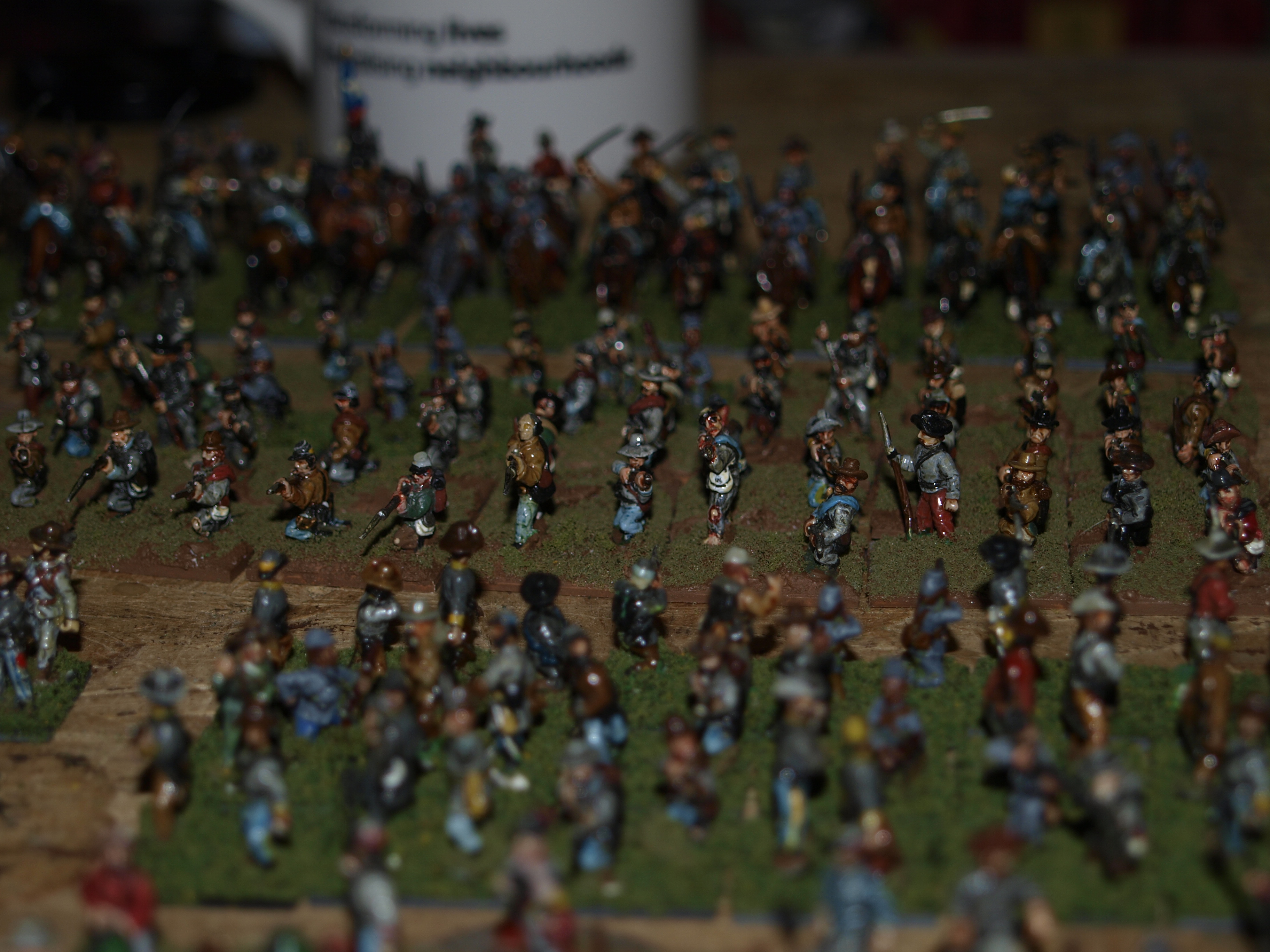 8 units of goblin warriors, 12 to a unit with commander and banner bearer