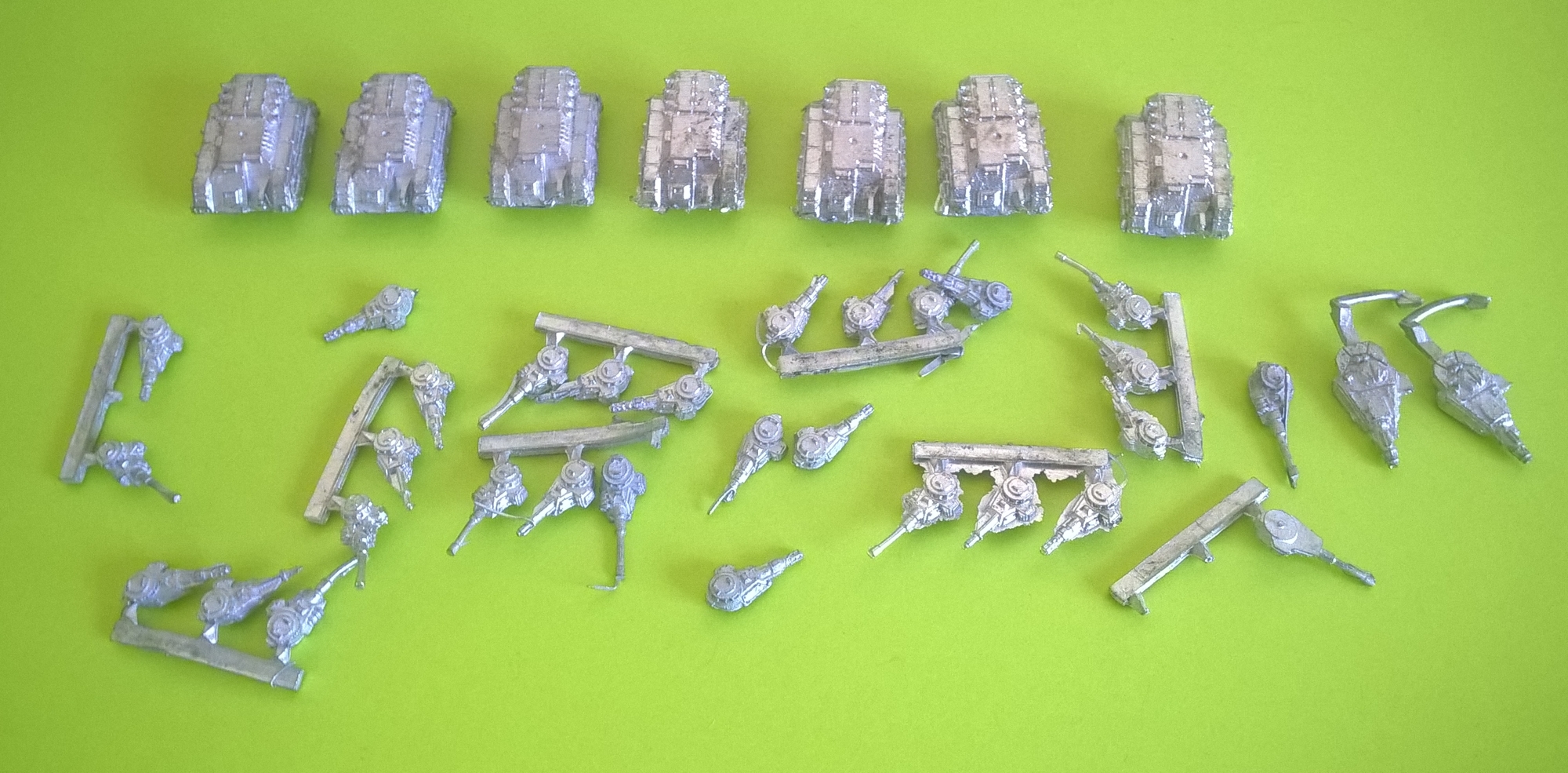 More stuff for the purge. This consists of a lot of 7 classic AoT infantry fighting vehicles. Multiple turrets for them are available equipped with autocannons, flamethrower/chemical weapon, and mutli-laser version allowing multiple modeling opportunities and of course amenable for magnetization based swapping. Included are two fan made conquerer turrets which can be used to make Chimedon variants which excel as character of centerpiece units in the formation.