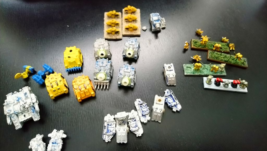 Mostly plastic miniatures, but also some forumsware terminators and sniper. Some tanks are scratch builds from rhinos.