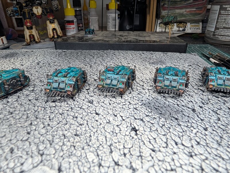 Heres a few shots of my first test painting of SOH Rhinos - went with contrast for the main hull colours and then spent some time trying to weather them up