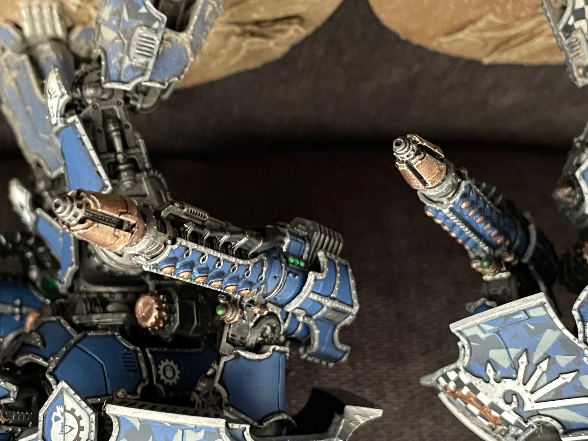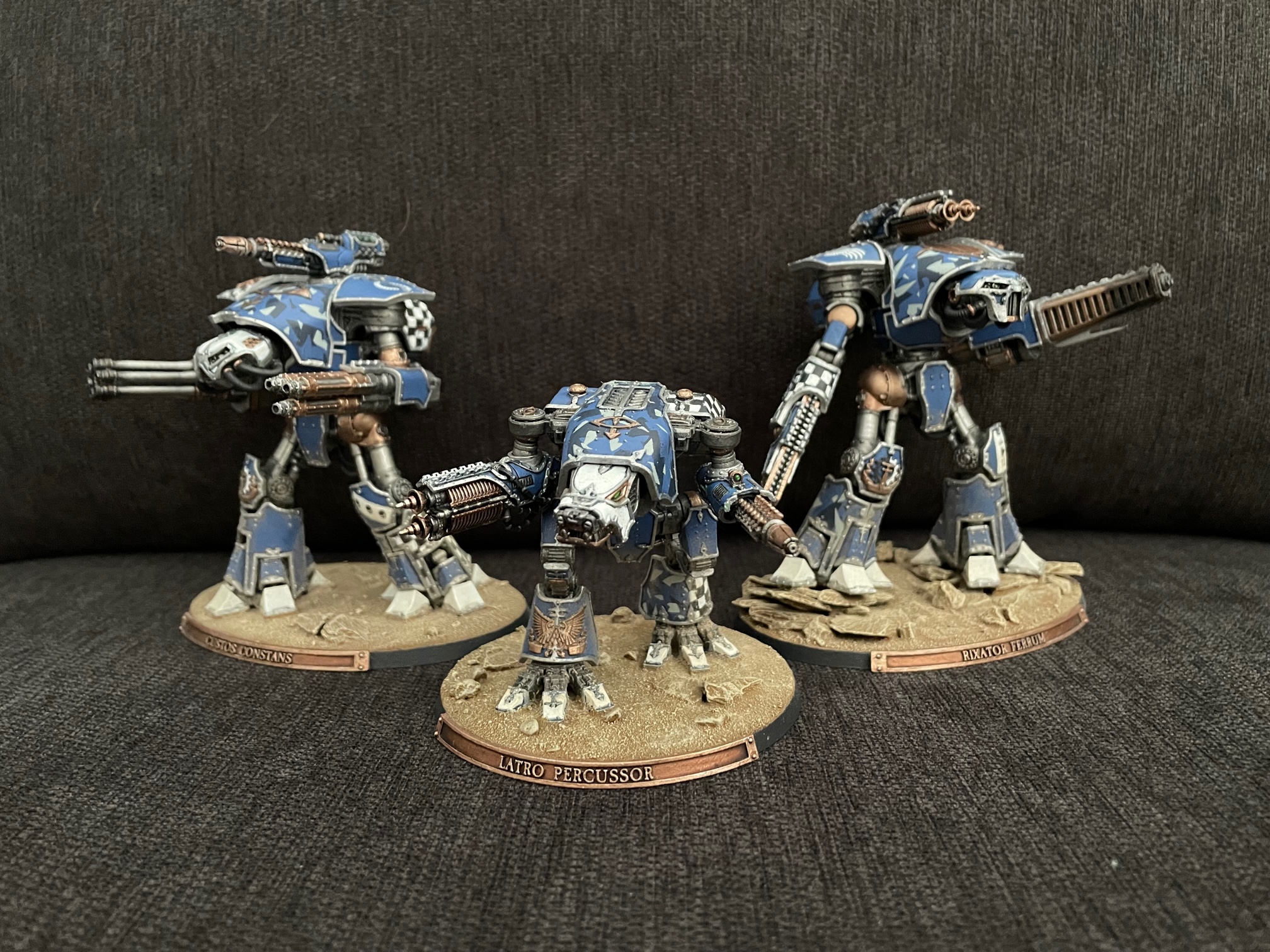 And here's the Questoris knights, pre-decals, sporting their new dual battle cannon arms: