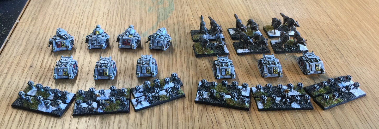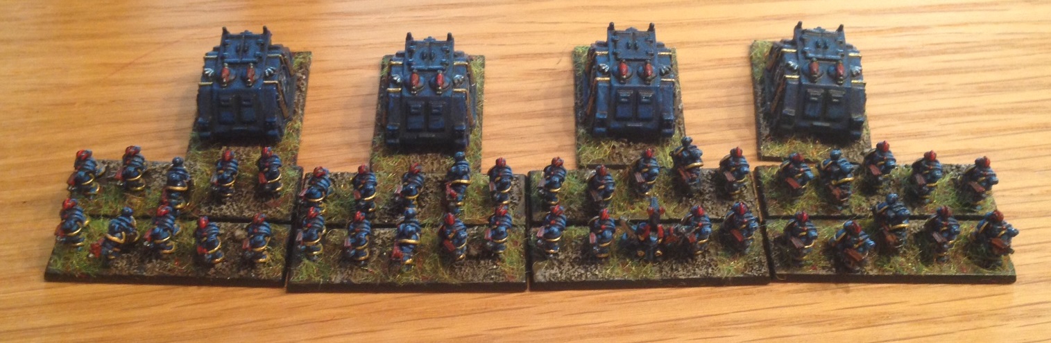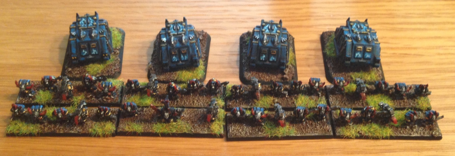 This army looks really intimidating on the table. Respawning Infantry, the ability to Teleport/Portal in the entire army. A 3BP (MW) gun.