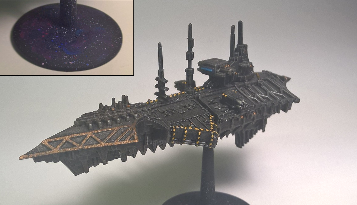 Nothing really special. Just an old Pre-Heresy cruiser from GrimDarkBits. Sold off my old GW ones to people with greater needs than I during the last days of SG because I had one of these floating around. Figured I should finally get this old guy a few slaps of paint to an acceptable tabletop level. Used Army Painter Dragon Red paint which admittedly is really damn red and covers well but at the same time seems to glow in the dark. I'll probably switch back to VGC Heavy Red and Bloody Red in the future as I like the deeper tones. Perhaps adding purple ink into the mix might work too