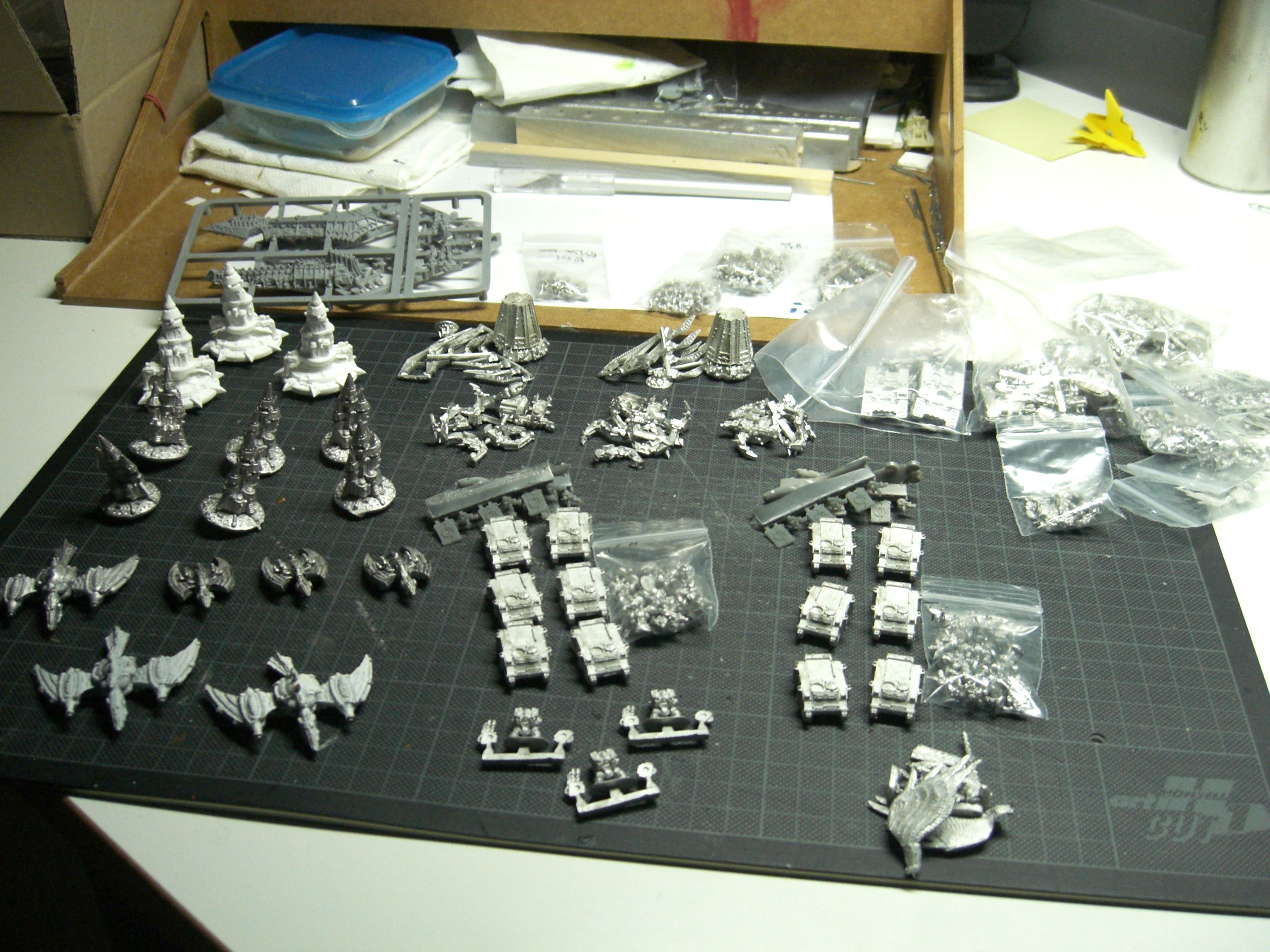 nice, been years since i saw those warp spire proxies used – what did you do to get the two halves flat for glueing?