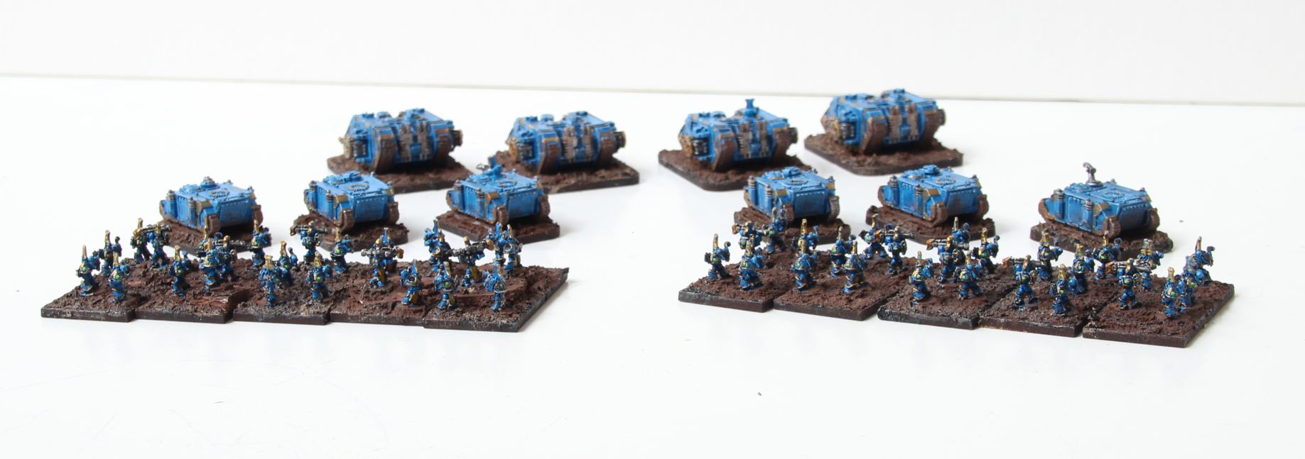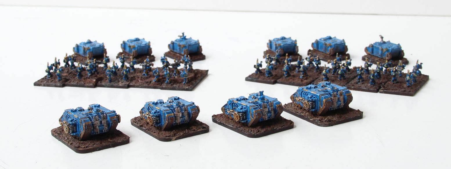 I started a new project, since the army is now almost complete. First WIP shot of the Rhinos and Land Raiders