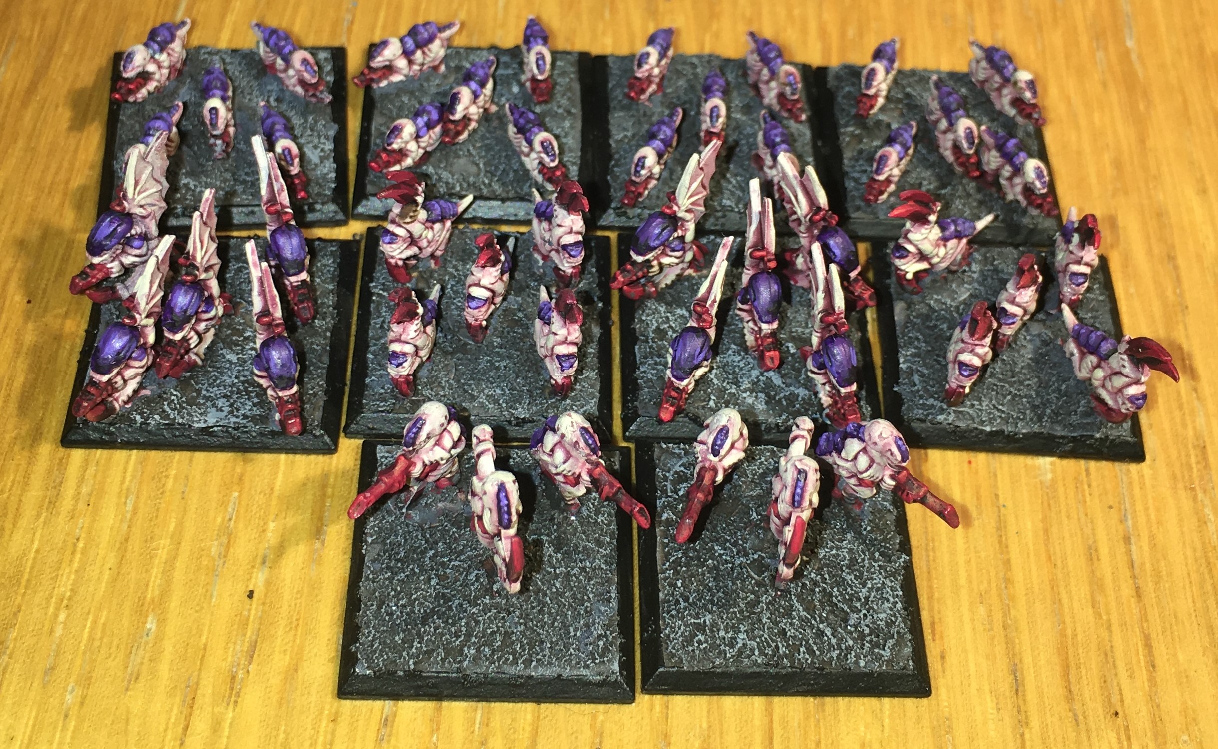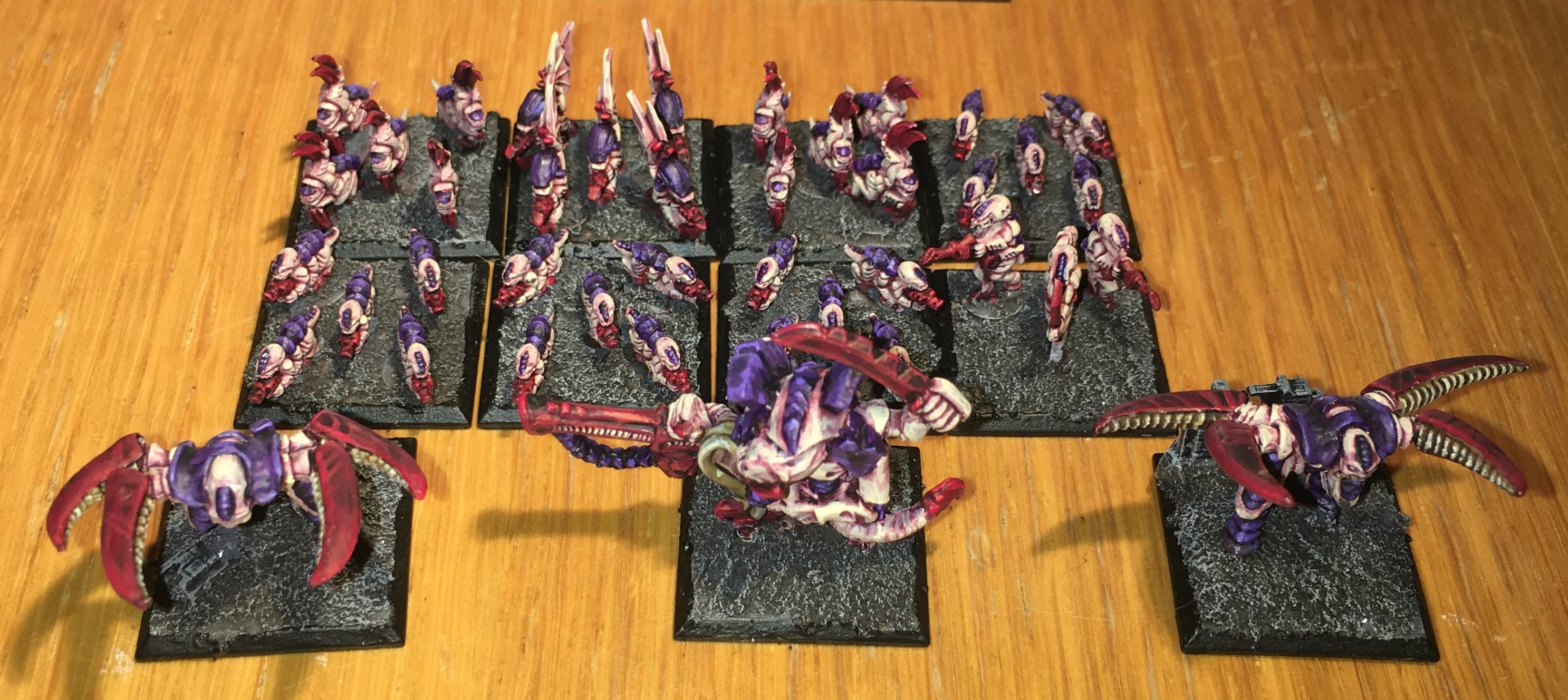 Thanks for the comments. Tyranids were really fun to paint. I'm thinking of taking a break from doing minigeddon armies and finish my Tyranids instead. I have most of the miniatures needed (lacking biovores and zoanthropes, but I've noticed that there are good proxies for them both nowadays