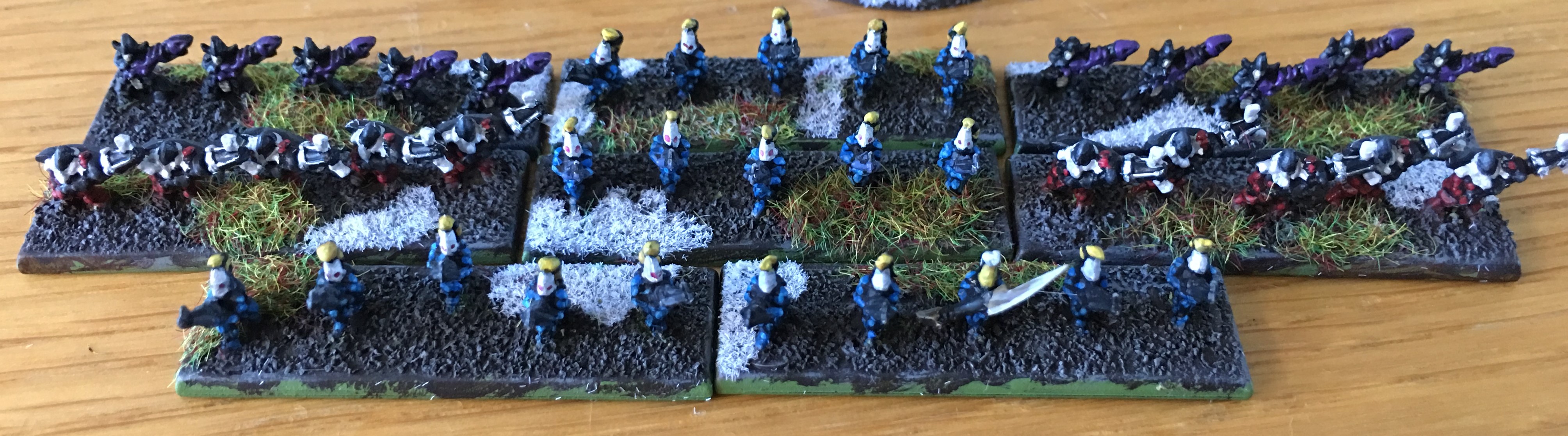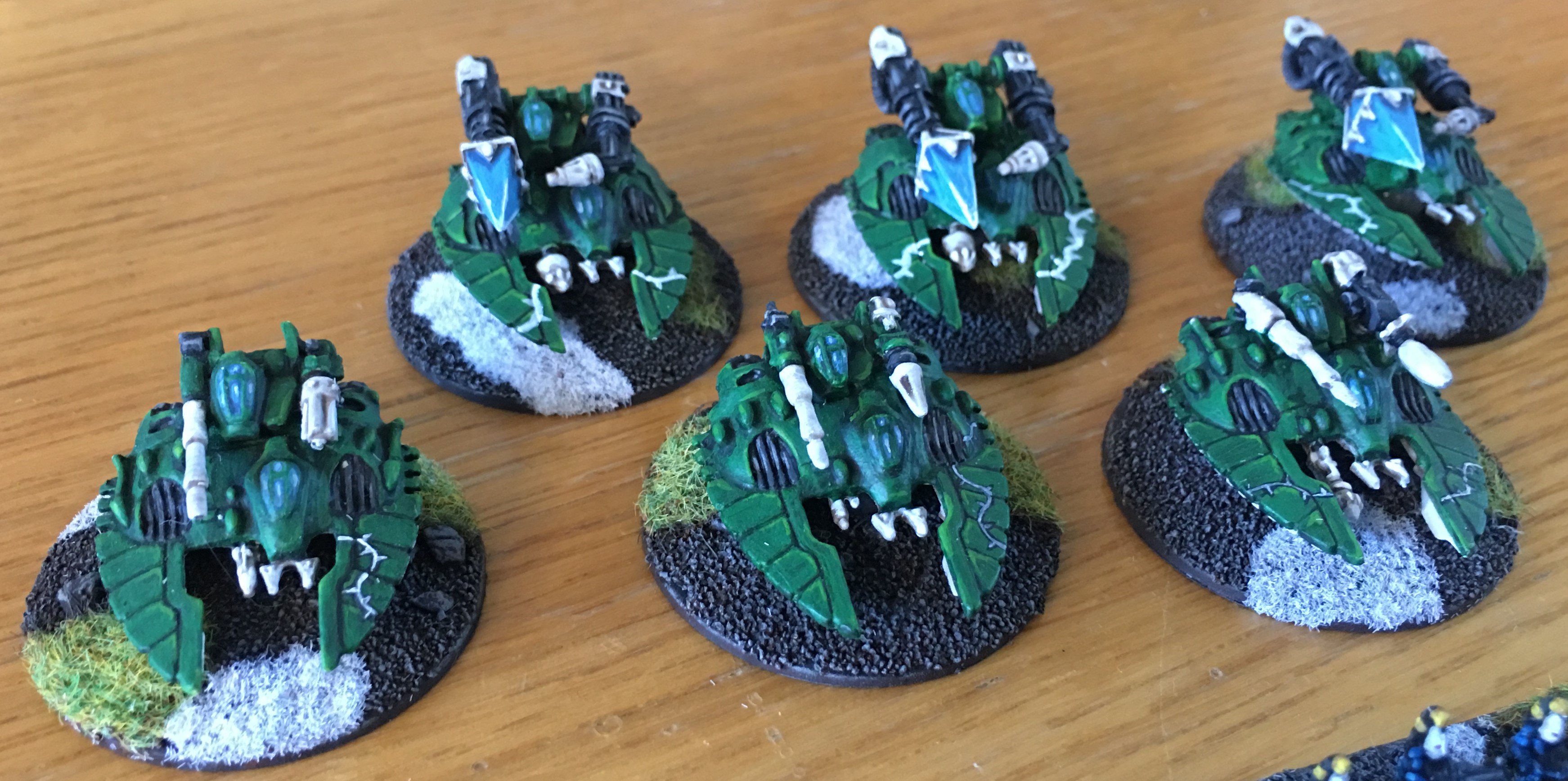 Biel Tan EldarI might be wrong but this army feels really strong. The long range disrupt artillery. The Skimmer tanks. It will be interesting to see but I suspect this will be slightly more powerful than the other armies. When I took the photos I realized that I had forgotten to paint the base edges. So just imagine them black (I painted them afterwards just didn't bother taking new shots).