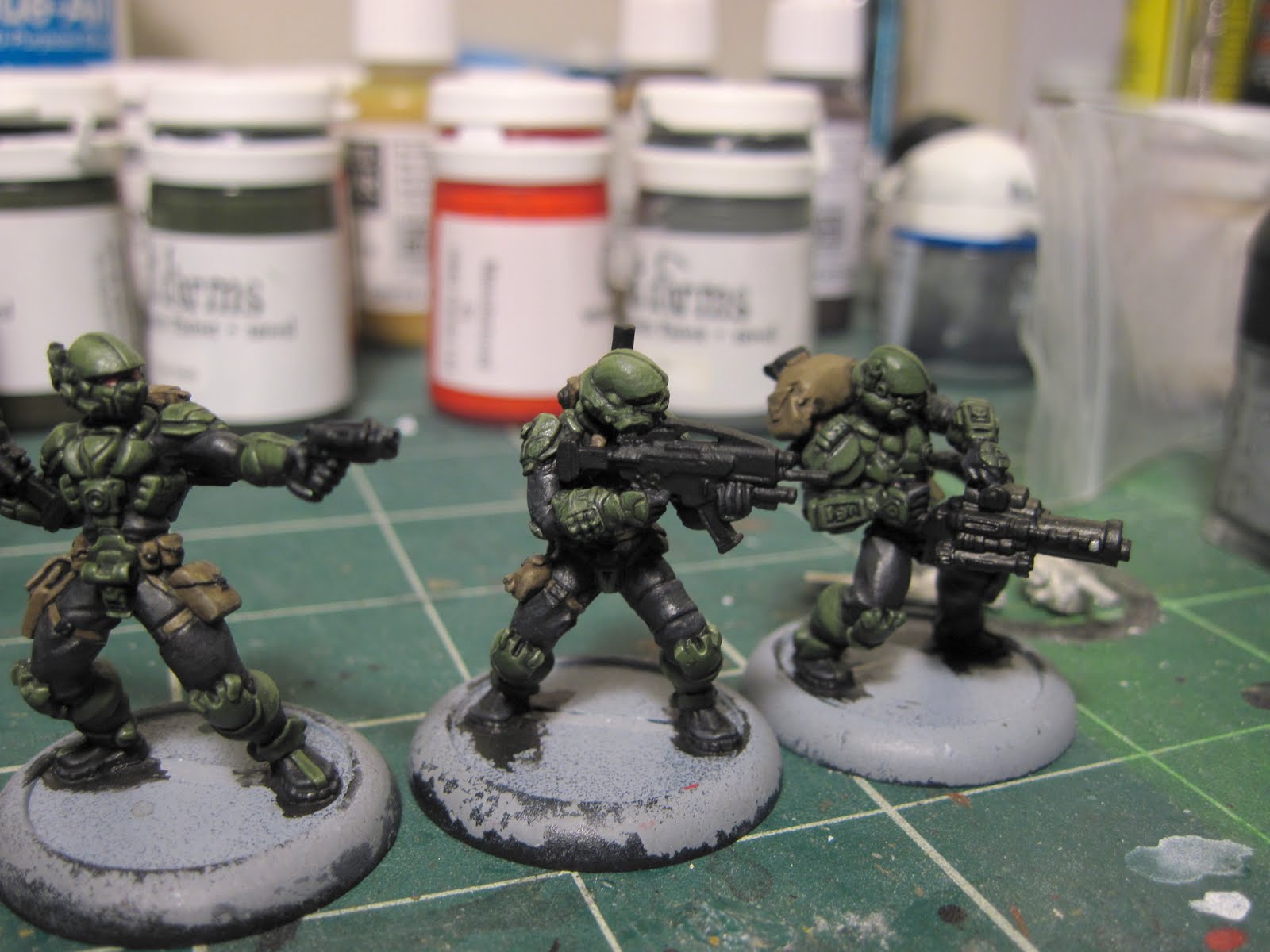 I wanted to see what the armor would like like so I started that on the Assault Leader as well. This is after a base coat and a shade.